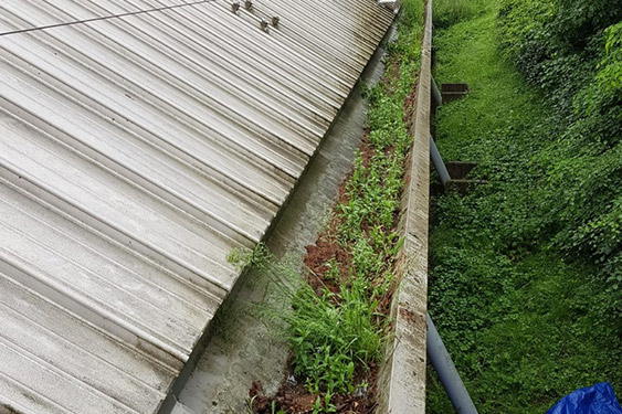 Gutter blockages affecting three commercial buildings near Heathrow.